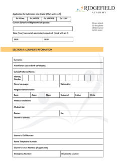 Application forms can be collected at Ridgefield Academy, or downloaded below. Completed forms can be returned to